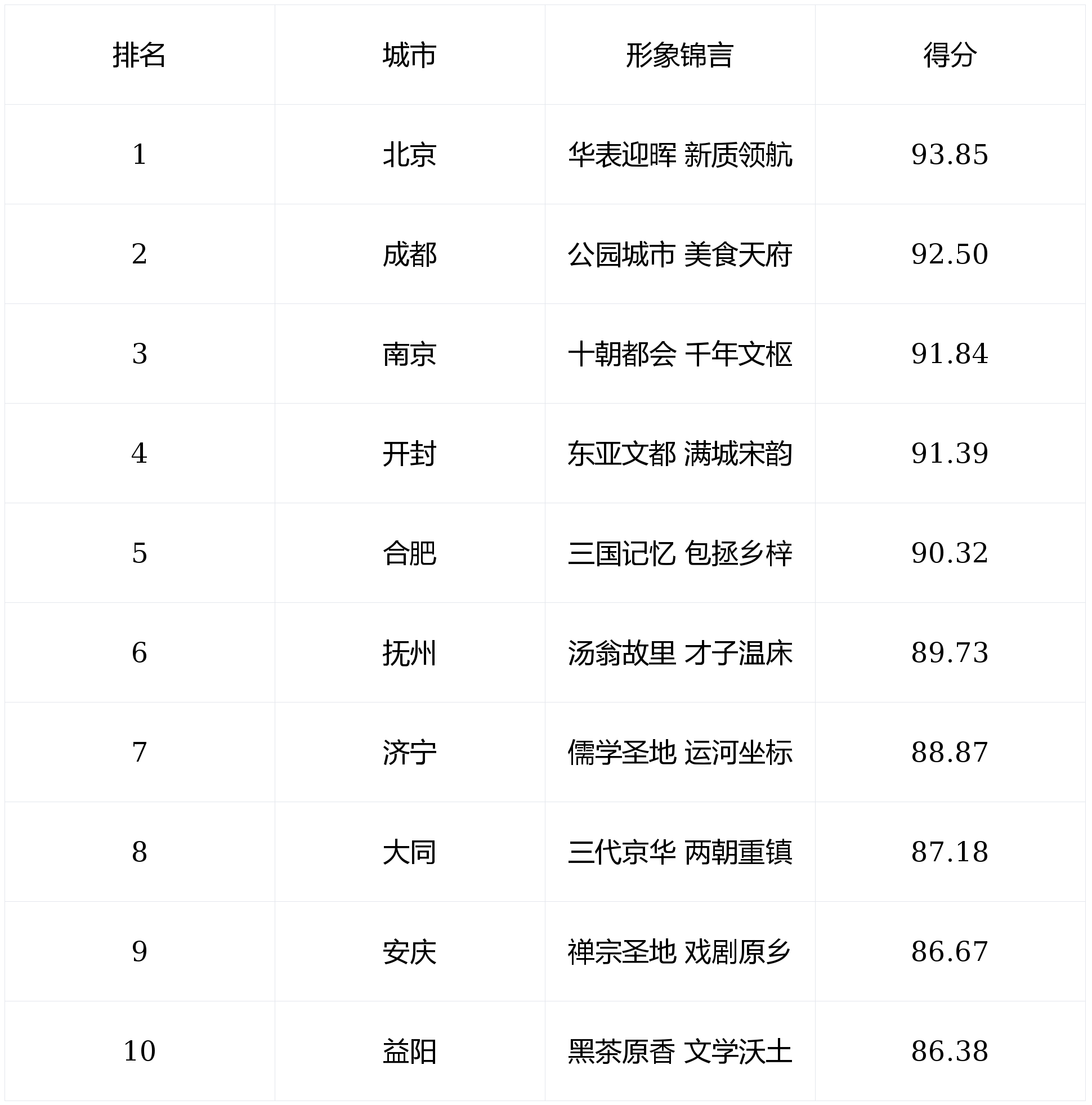 「中国文化合作力十佳城市」,使用《GN中国城市文化合作力评价目标系统》进行评价,该系统由文化资本、文化特色、文化财产、文化事业、文化品牌正在内的5项一级目标、11项二级目标、60项目标形成,并要求对上榜城市给具点睛其文化魅力的简练抽象锦言。